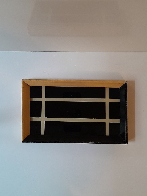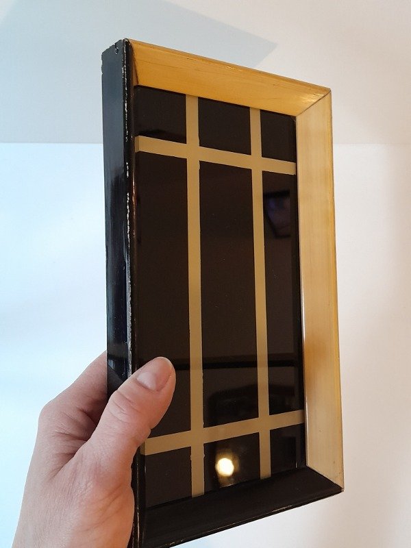 Sin uso, con algunos detalles de desgaste en la madera (no afecta ni su uso ni su estética) por estar guardada muchos años en depósito. Vidrio impecable !