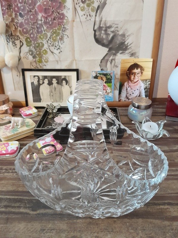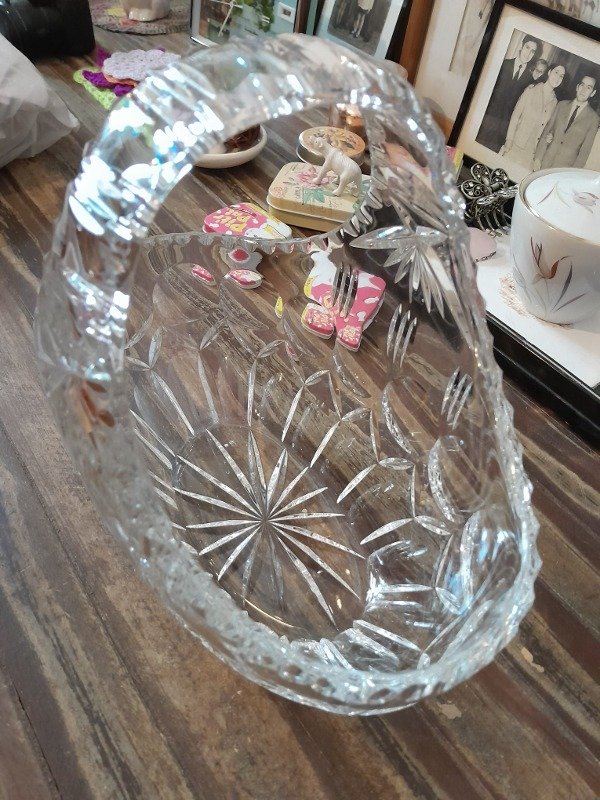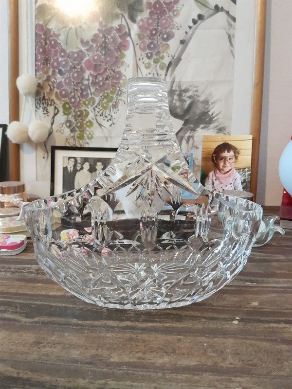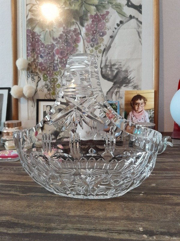 Bellísima canasta de Cristal, tallada, facetada